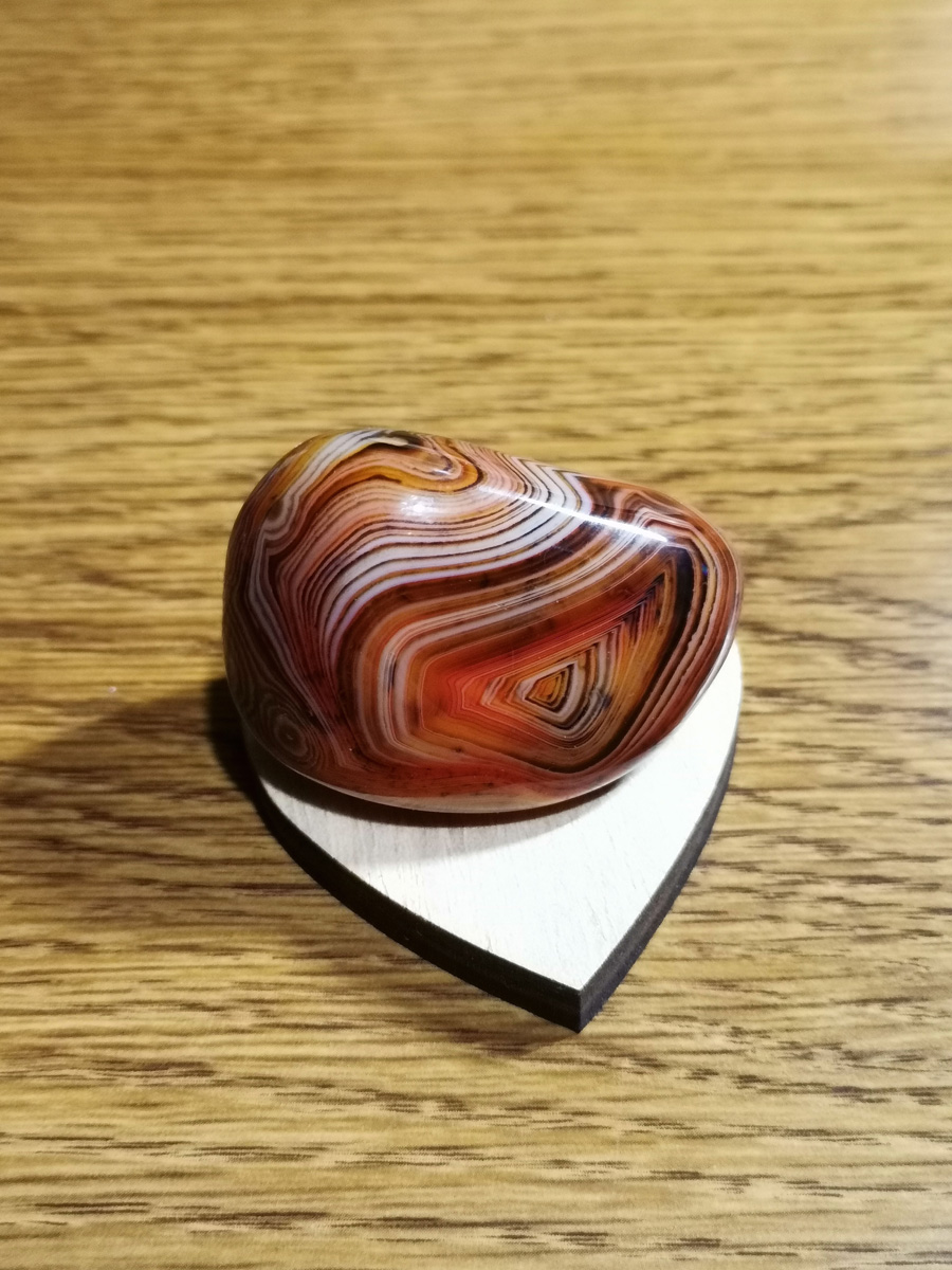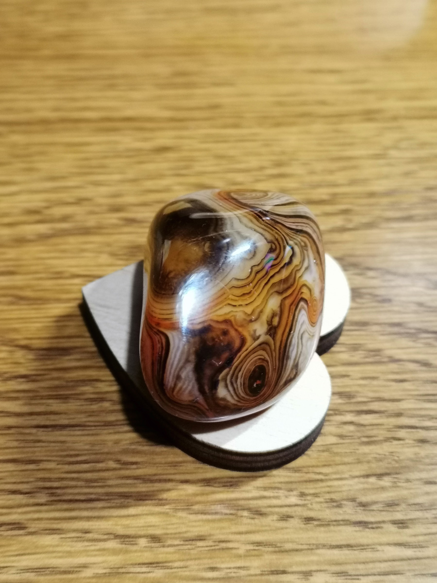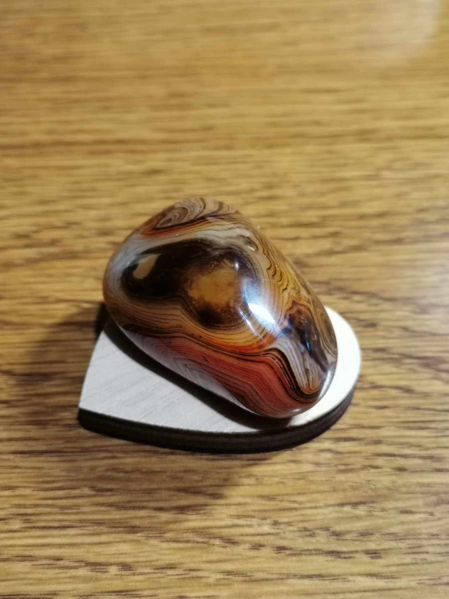 Unikatni rjavi jaspis z belimi progami je energijsko programiran z metodo AlfaVal. Kristal je velik približno 5 x 3 x 2 cm in je primeren kot osebno orodje za podporo ali kot edinstveno darilo.