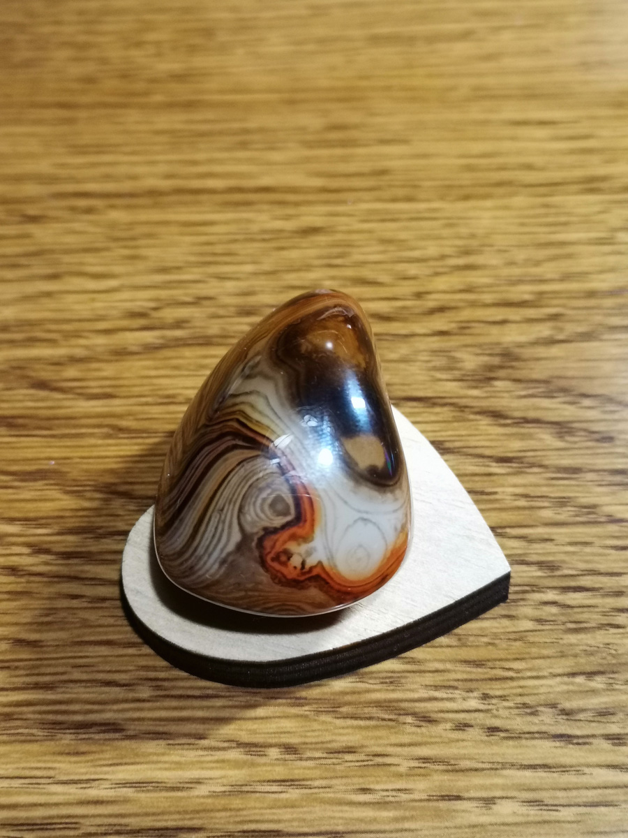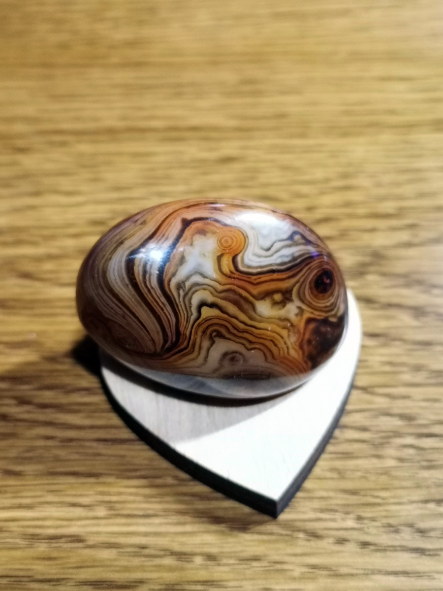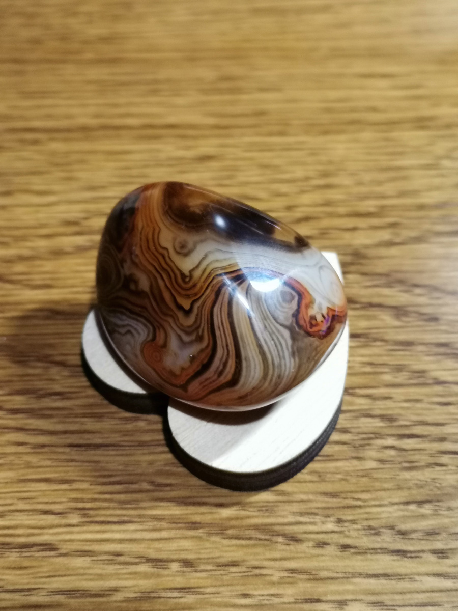 Unikatni rjavi jaspis z belimi progami je energijsko programiran z metodo AlfaVal. Kristal je velik približno 5 x 3 x 2 cm in je primeren kot osebno orodje za podporo ali kot edinstveno darilo.